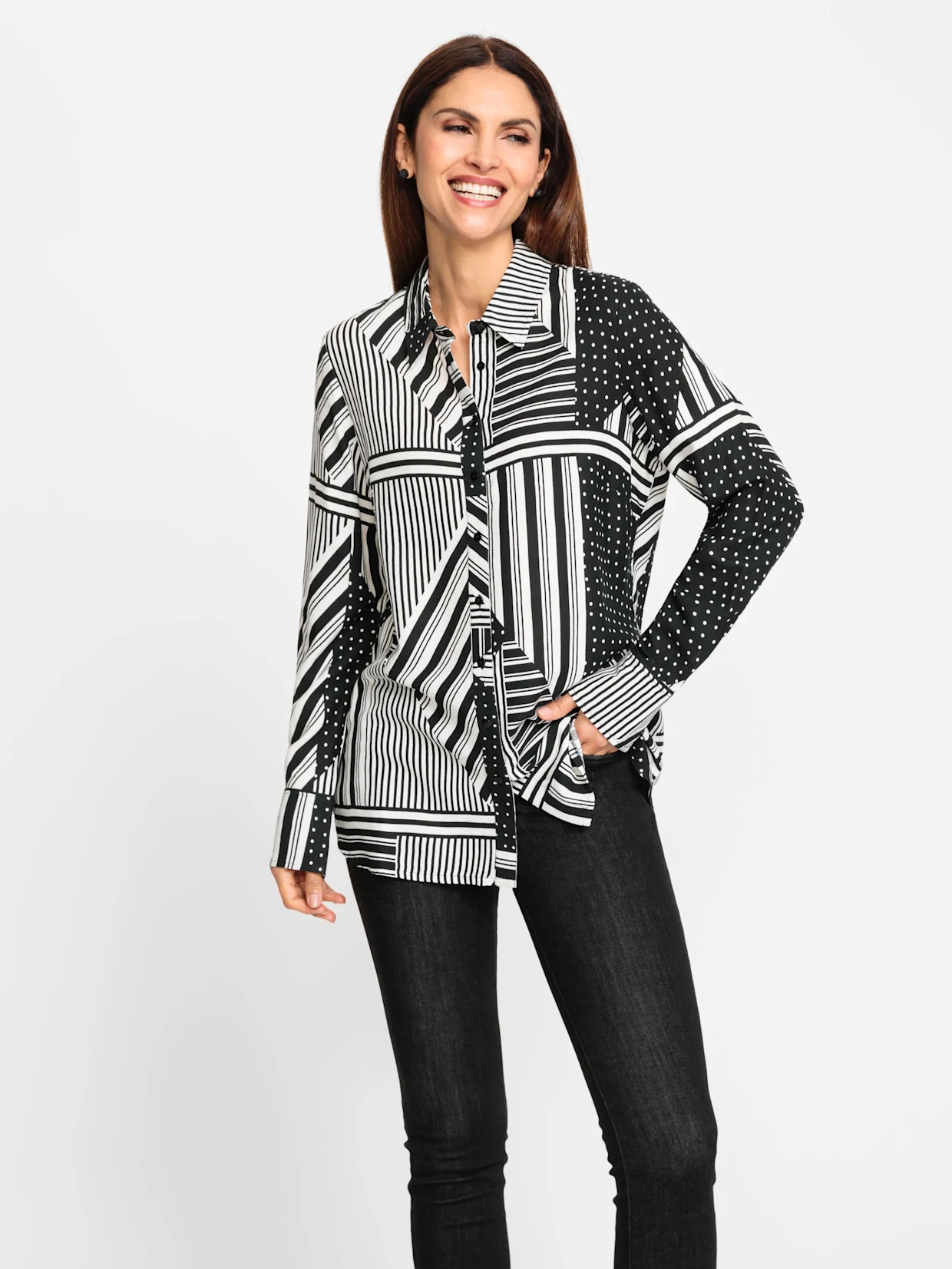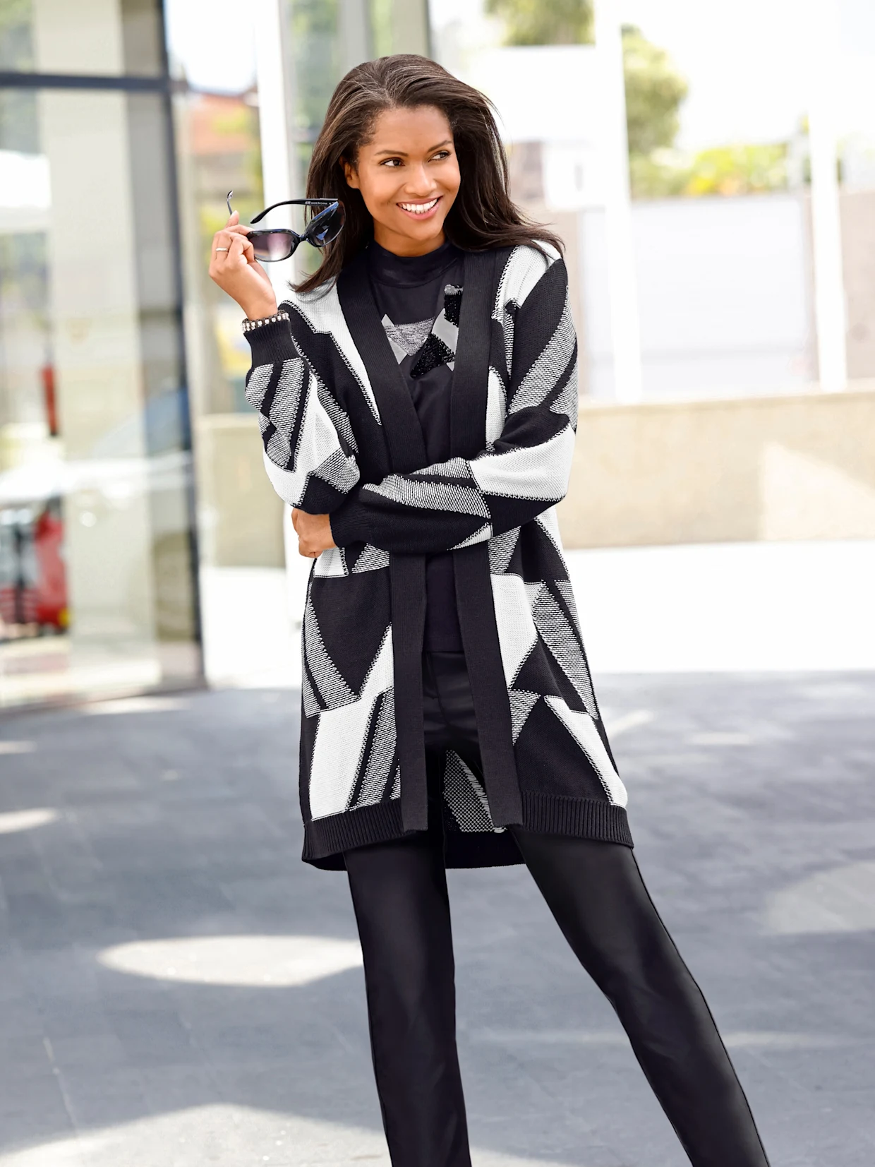 Geometrische Muster und Patchwork-Optiken sind ein wichtiger Part der Herbst Kleidung 2023! Diese zeigen sich gerne in klassischen Farbkombis wie Schwarz und Weiss, verstehen sich aber auch ganz prächtig mit knalligen Tönen. Wichtig ist nur, dass der modische Gegenspieler dazu dezent und einfarbig gehalten ist. So kommt der Herbsttrend perfekt zur Geltung und der Look wirkt nicht überladen.